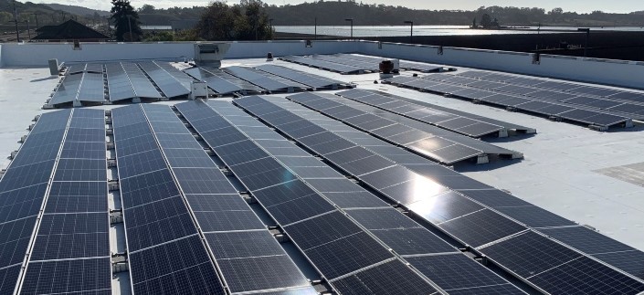 Single-axis trackers make up 70% of utility solar as the most efficient PV solution. Rocking Solar has modified this technology for commercial rooftops by eliminating pillars, bearings, and gears and enhancing wind resistance creating the lowest-cost rooftop energy available, with up to 20% lower capital cost per kWh and 10% more energy per roof area.